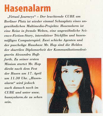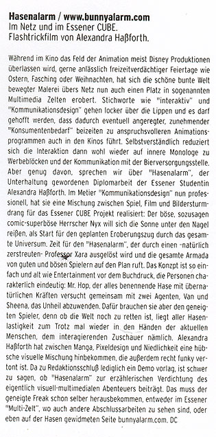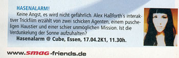 ------------------------------------------------------------------------------------------------------------------- BILDER | 2001 | CREW | BERICHTE | SOUNDTRACK | LINKS | HASENGALERIE